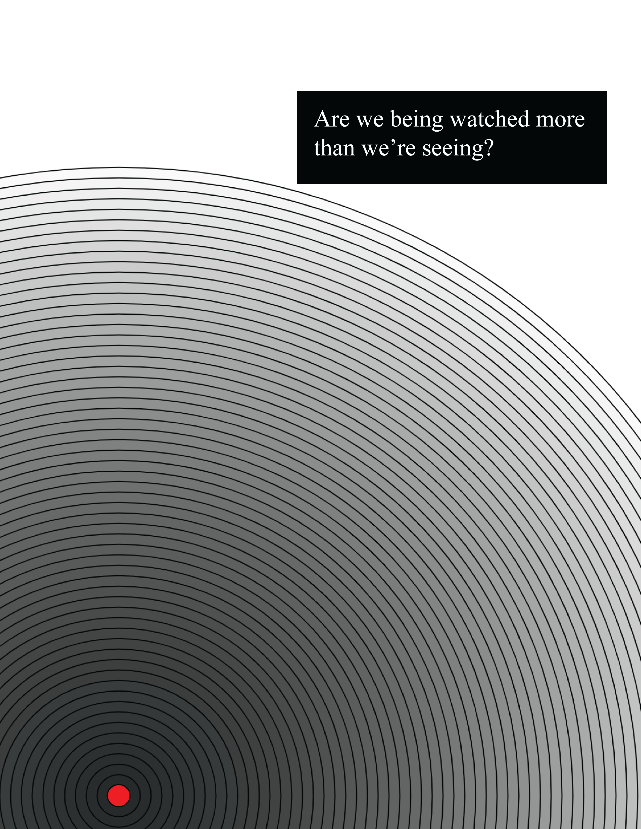 The poster is meant to question rather than answer. Subvert and interrogate the idea of being watched. Therefore, I added a box to question “Are we being watched more than we’re seeing?”