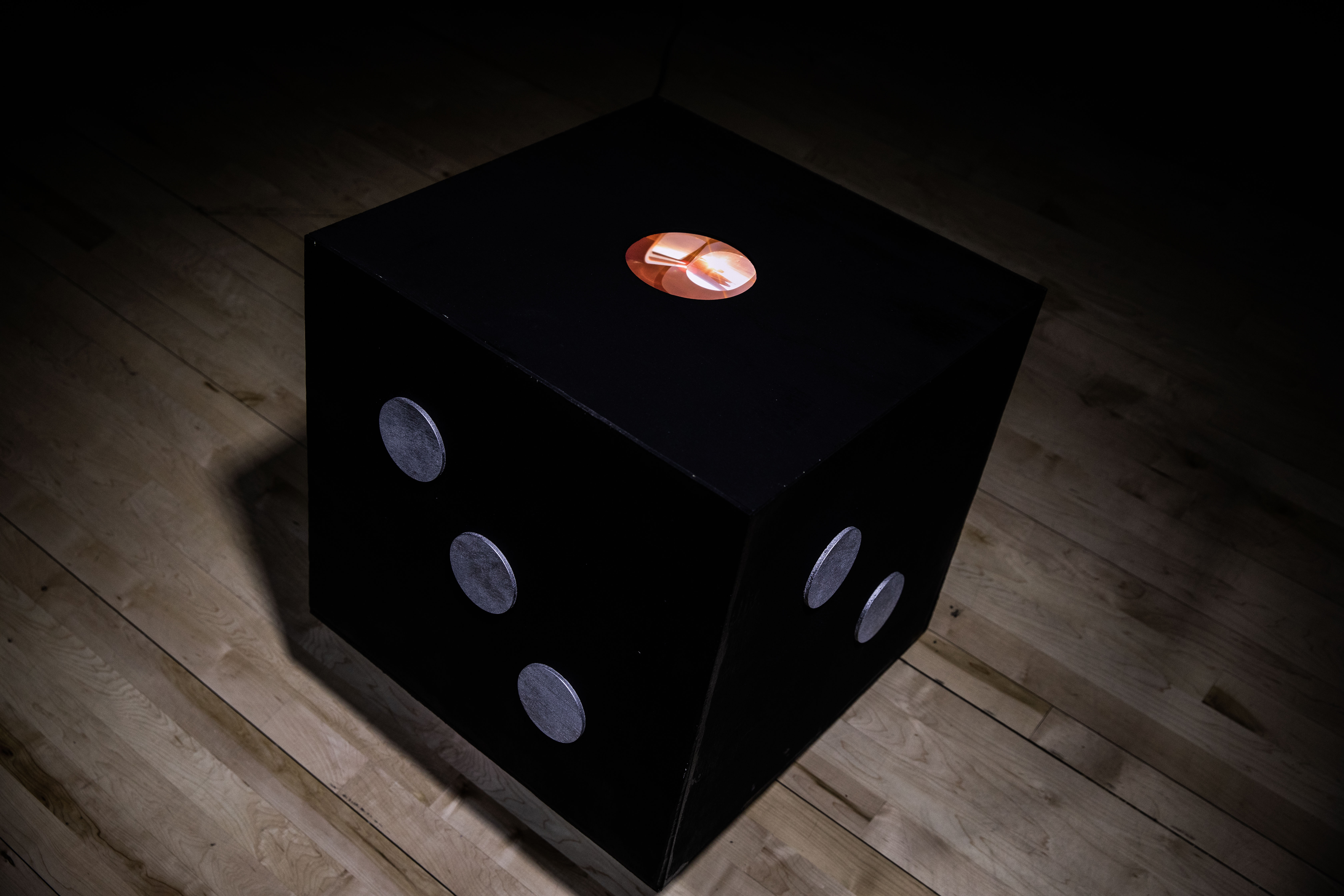A six-sided dice with the number 1 facing up plays memories created in New York. The number 6, facing down, plays videos of family and India, particularly from the time spent during the COVID-19 lockdown in 2020. Born, raised and inextricably tied to India, living intercontinental lives, creates an illusion of different timelines. With a roll of a dice, a chance, we’ve come to New York, but the base of our upbringing still continues to shape the life we currently lead. The videos from India are shadows of stories that we tell the people we surround ourselves with in the US. While defining our history, our current focus is solely on the side of the dice that is currently facing up. In physically returning to India, that life and timeline resumes without any time having passed. Life oceans apart run in parallel. Yet one is just out of view and at the back of one’s mind. The dice sits at an angle, in anticipation of where lives take us next.